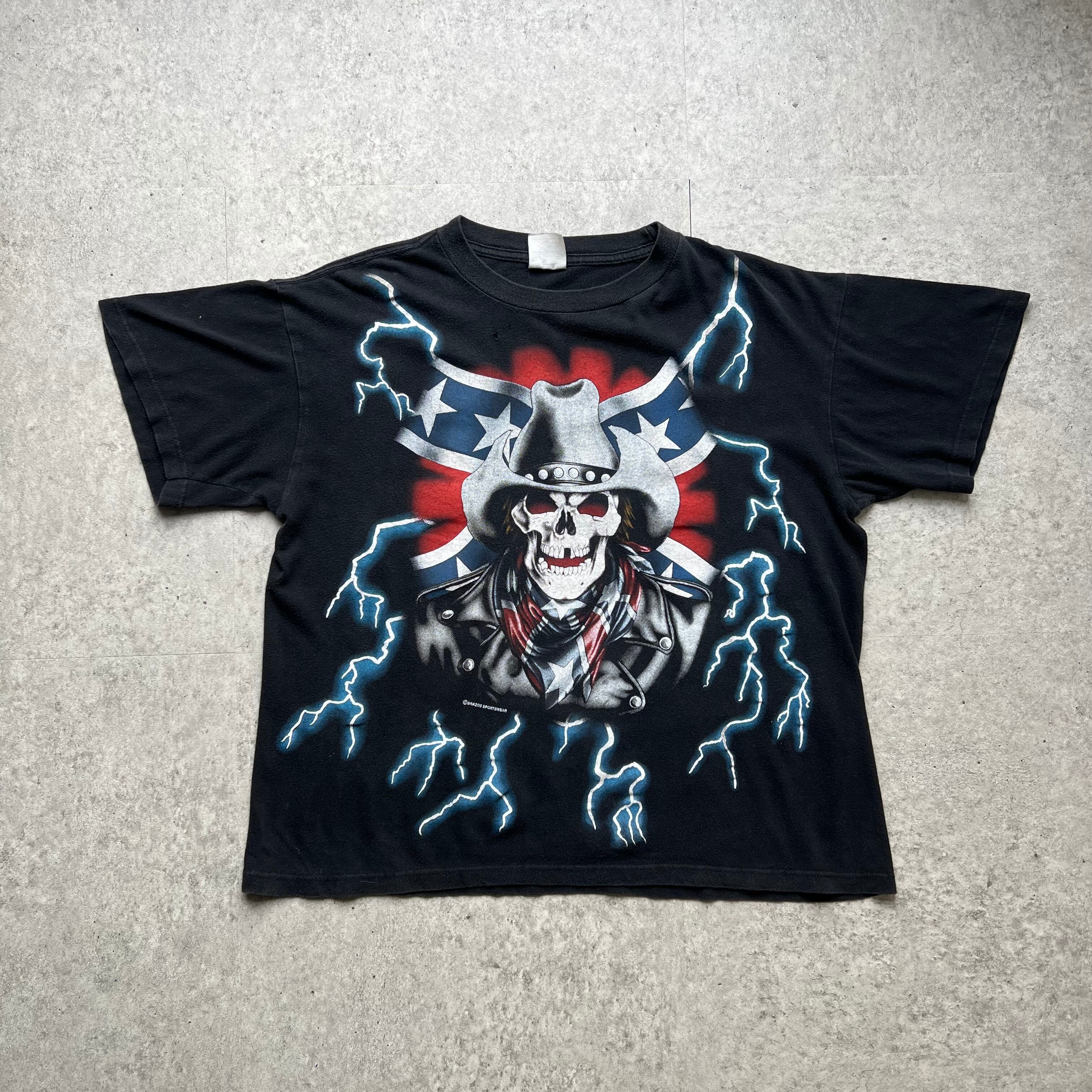 90s " AMERICAN THUNDER " Scull Print T-shirt / 90年代 アメリカンサンダー スカル プリントTシャツ