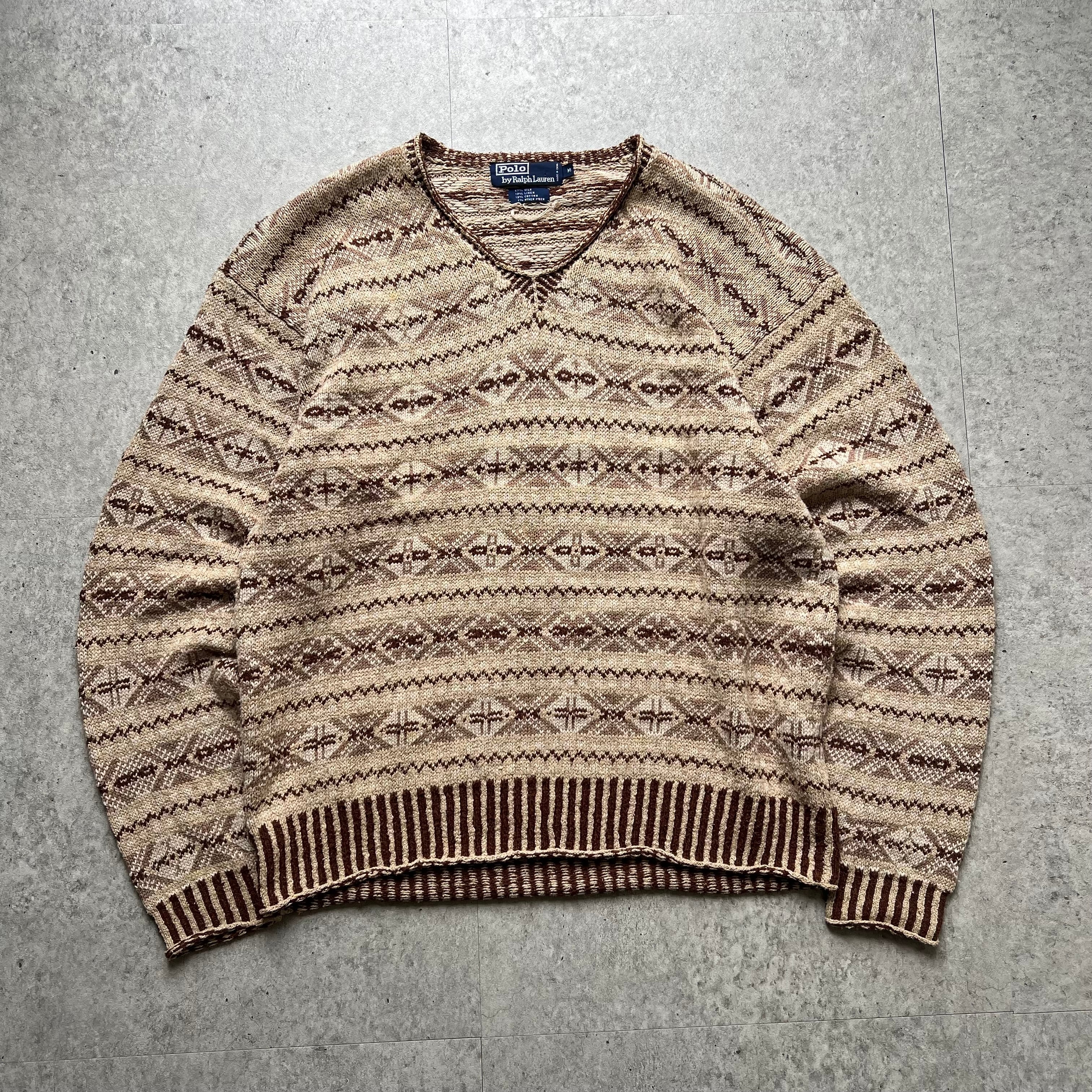 90s " Polo by Ralph Lauren " Native Pattern Vneck Knit / ポロバイラルフローレン ネイティブ柄 Vネック ニット