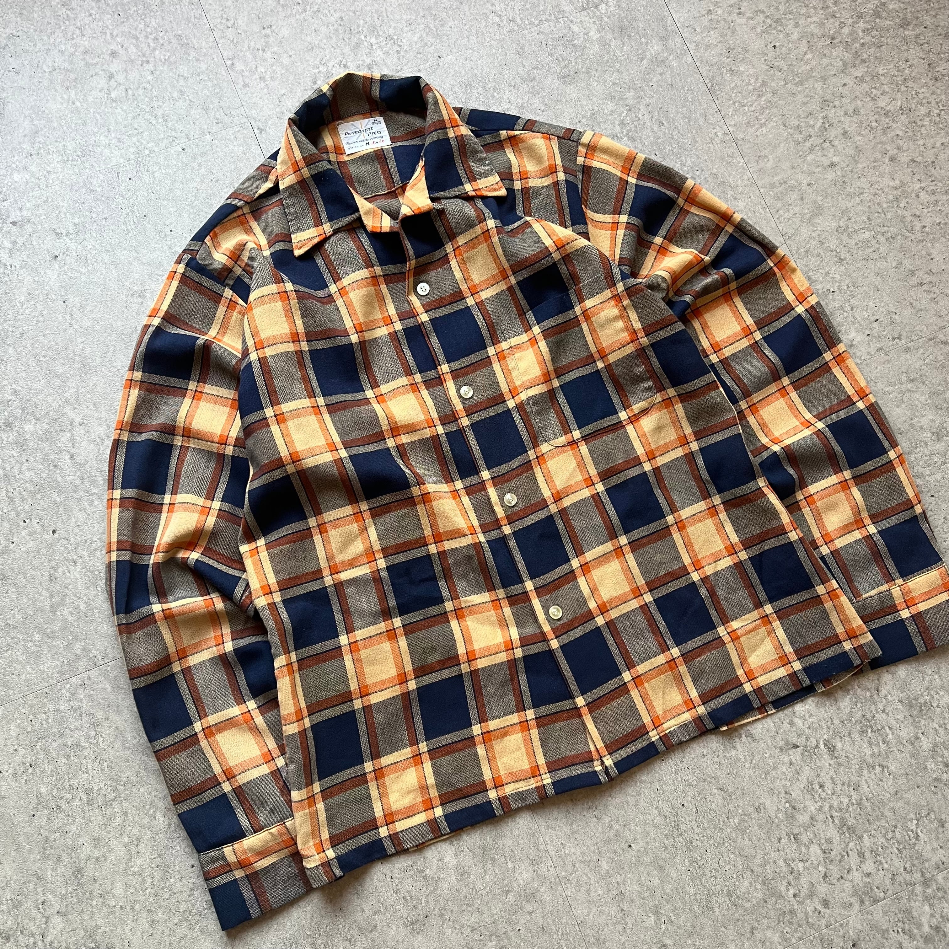 70s " Nofade " Open Collar Shirt Check made in USA / 70年代 オープンカラーシャツ チェック USA製