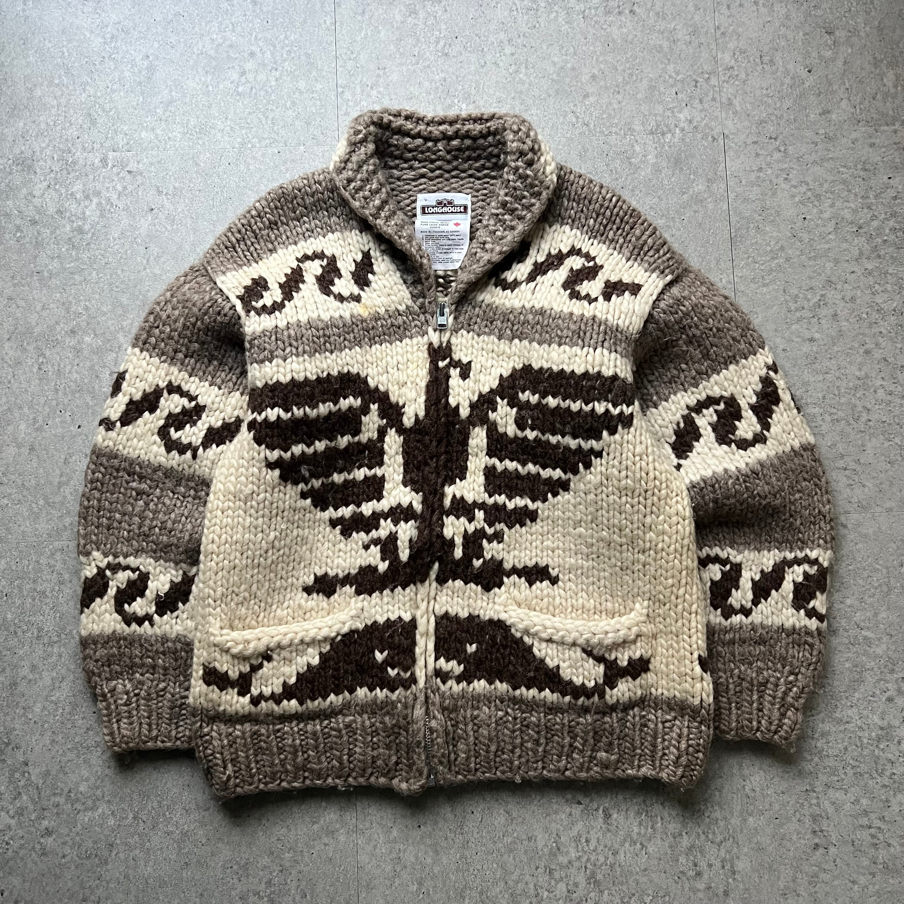 90s " LONGHOUSE " Eagle Cowichan Knit Sweater made in Canada / 90年代 ロングハウス イーグル カウチンニット カナダ製