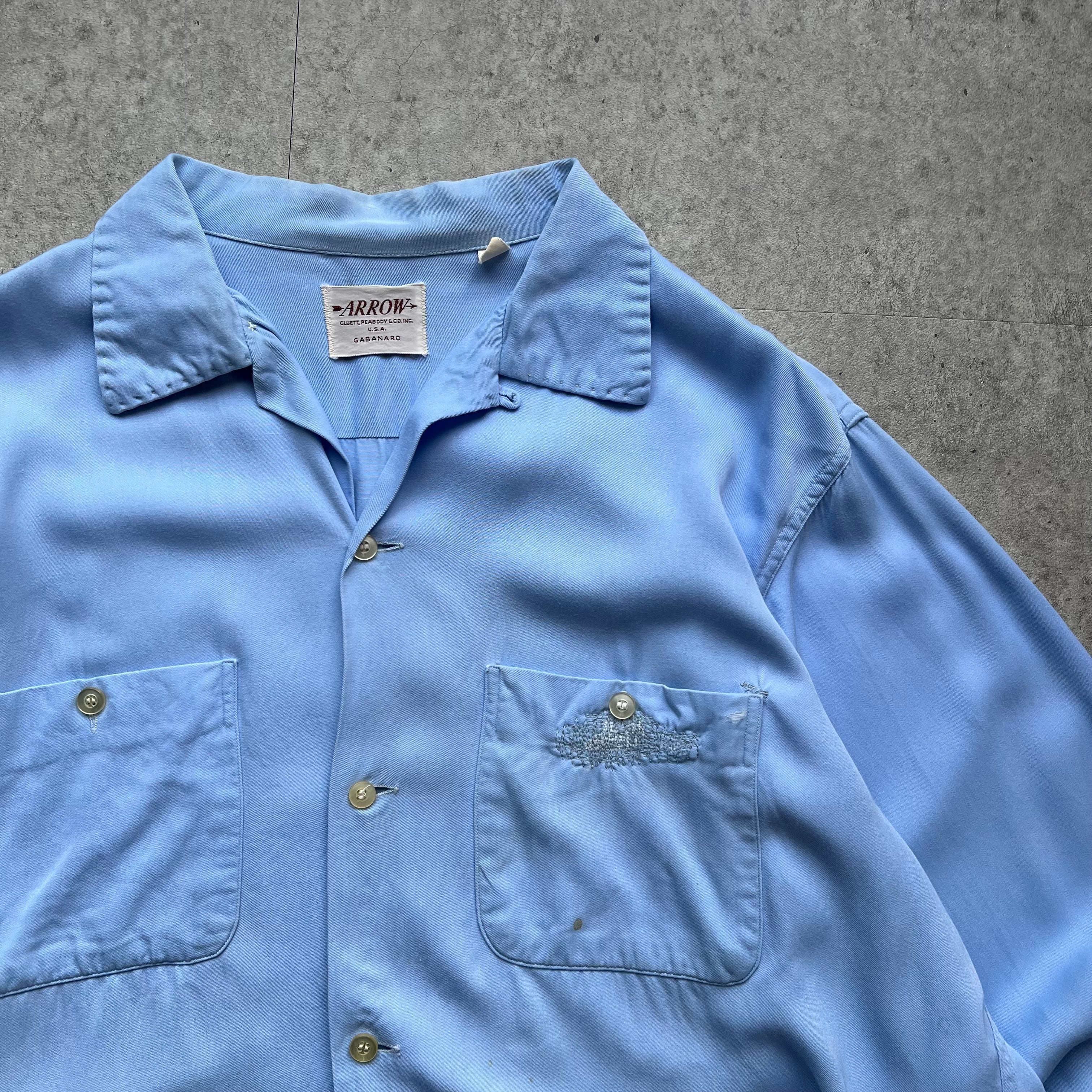 50s " ARROW " Rayon Gabardine Shirt Open Collar made in USA / 50年代 アロー レーヨンギャバ オープンカラーシャツ USA製