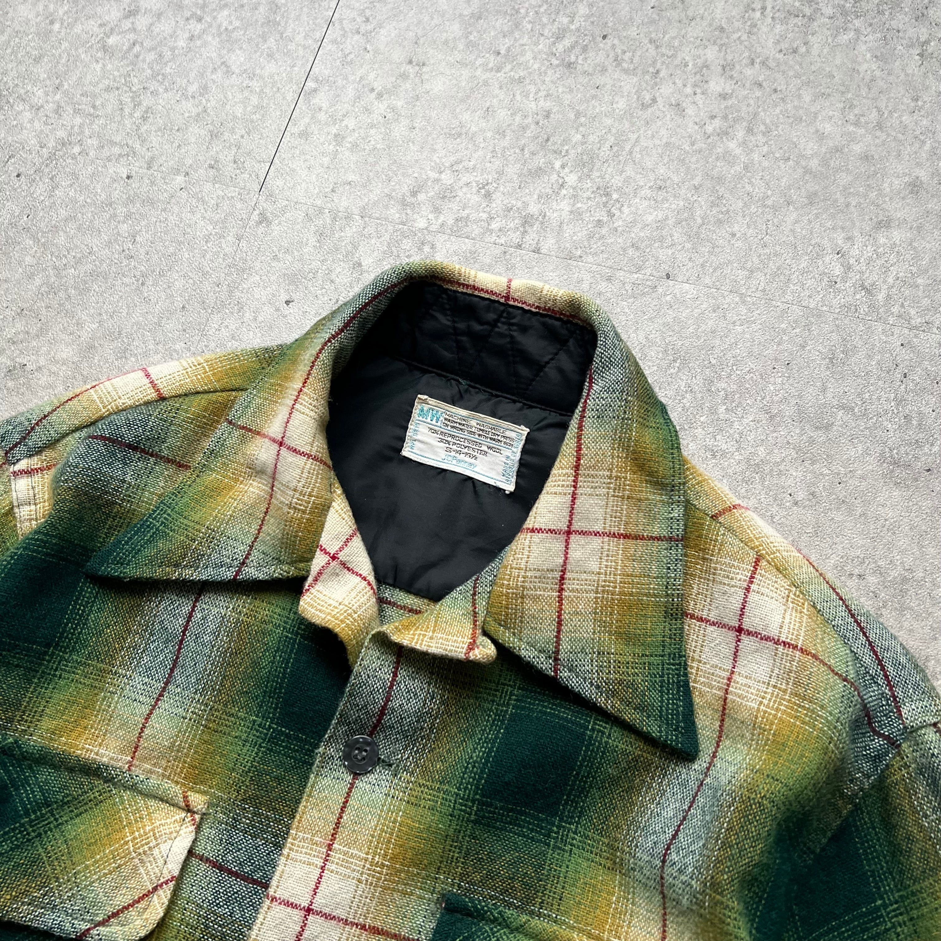 70s " JC Penney " Ombre Check Open Collar Shirt / 70年代 ジェイシーペニー オンブレチェック 開襟シャツ