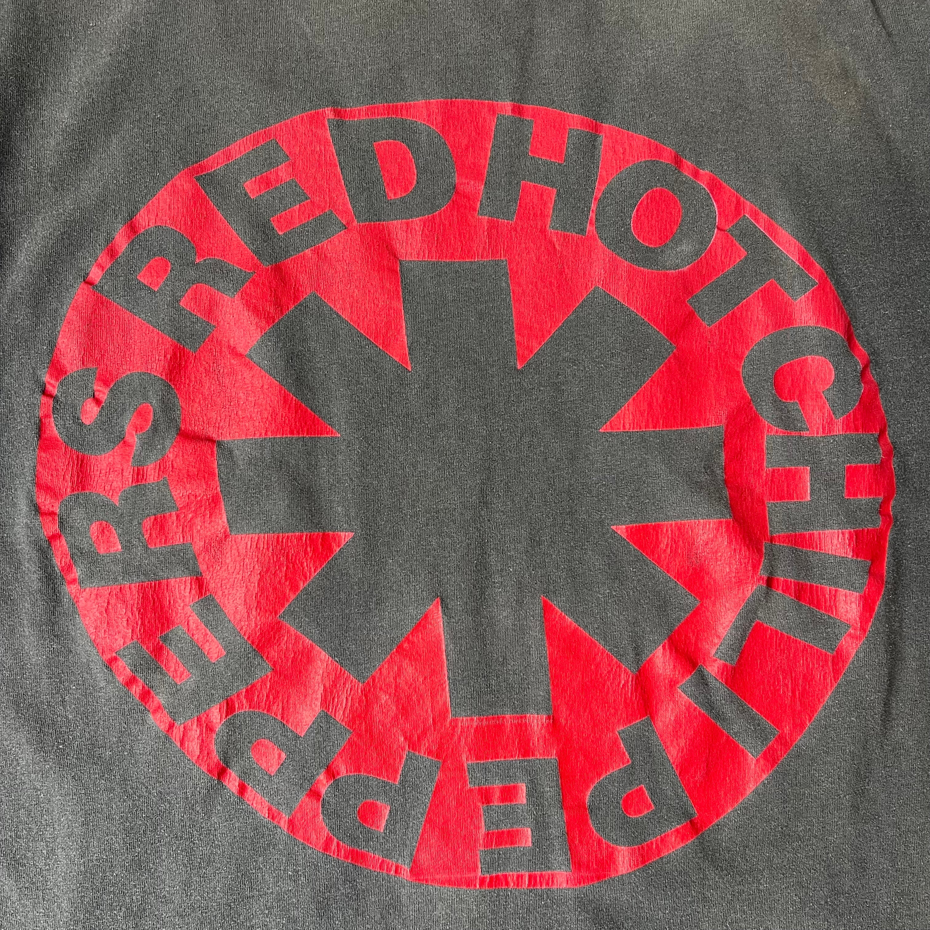 90s " RED HOD CHILI PEPPERS " 1990 CURVING LOGO Member Portrait Print T-shirt made in USA Fade Black / 90年代 レッドホッドチリペッパーズ メンバーポートレート プリントTシャツ USA製 フェードブラック