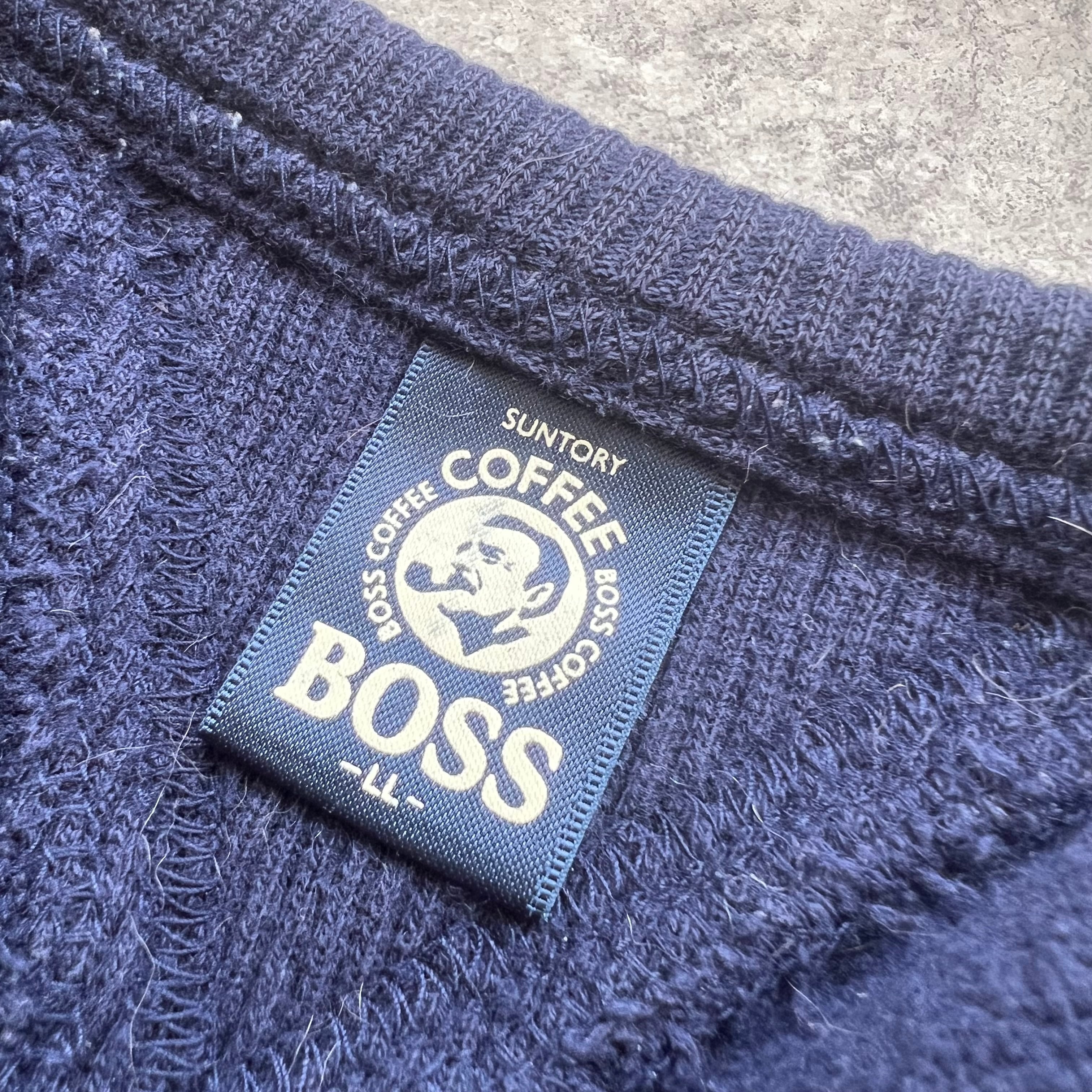 90s " SUNTORY BOSS COFFEE " Frocky Print Sweat V Gazette / 90年代 サントリー ボスコーヒー フロッキープリント 両V