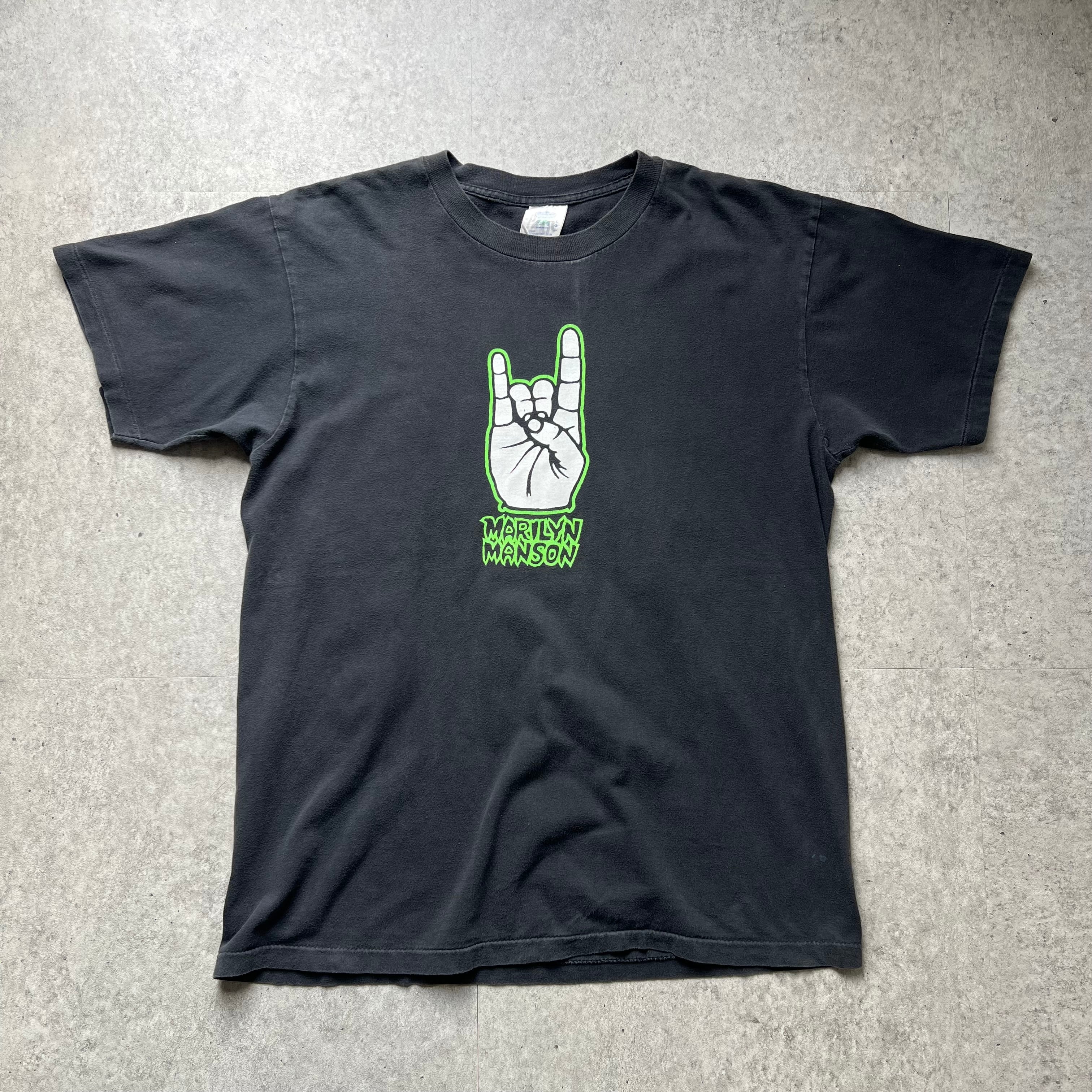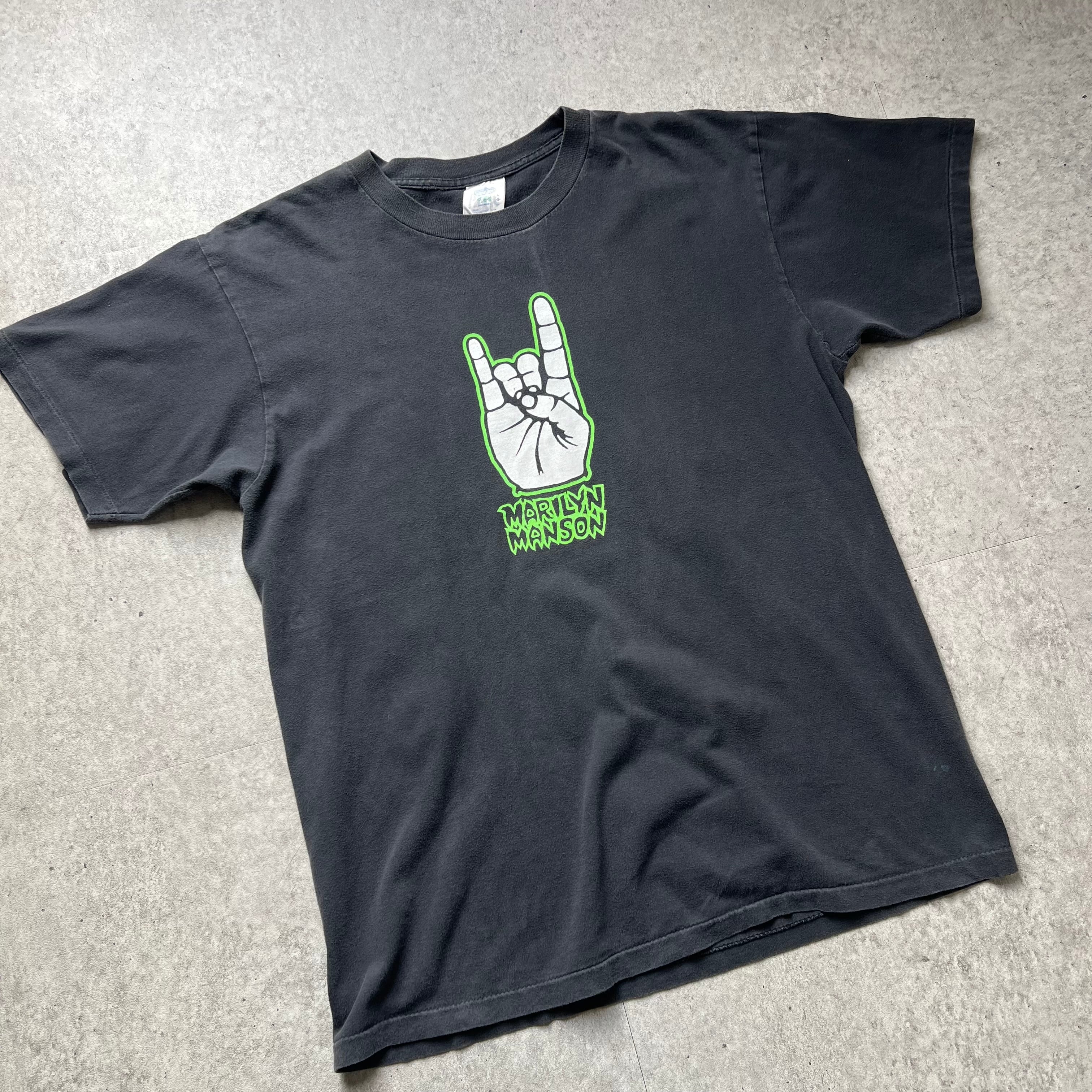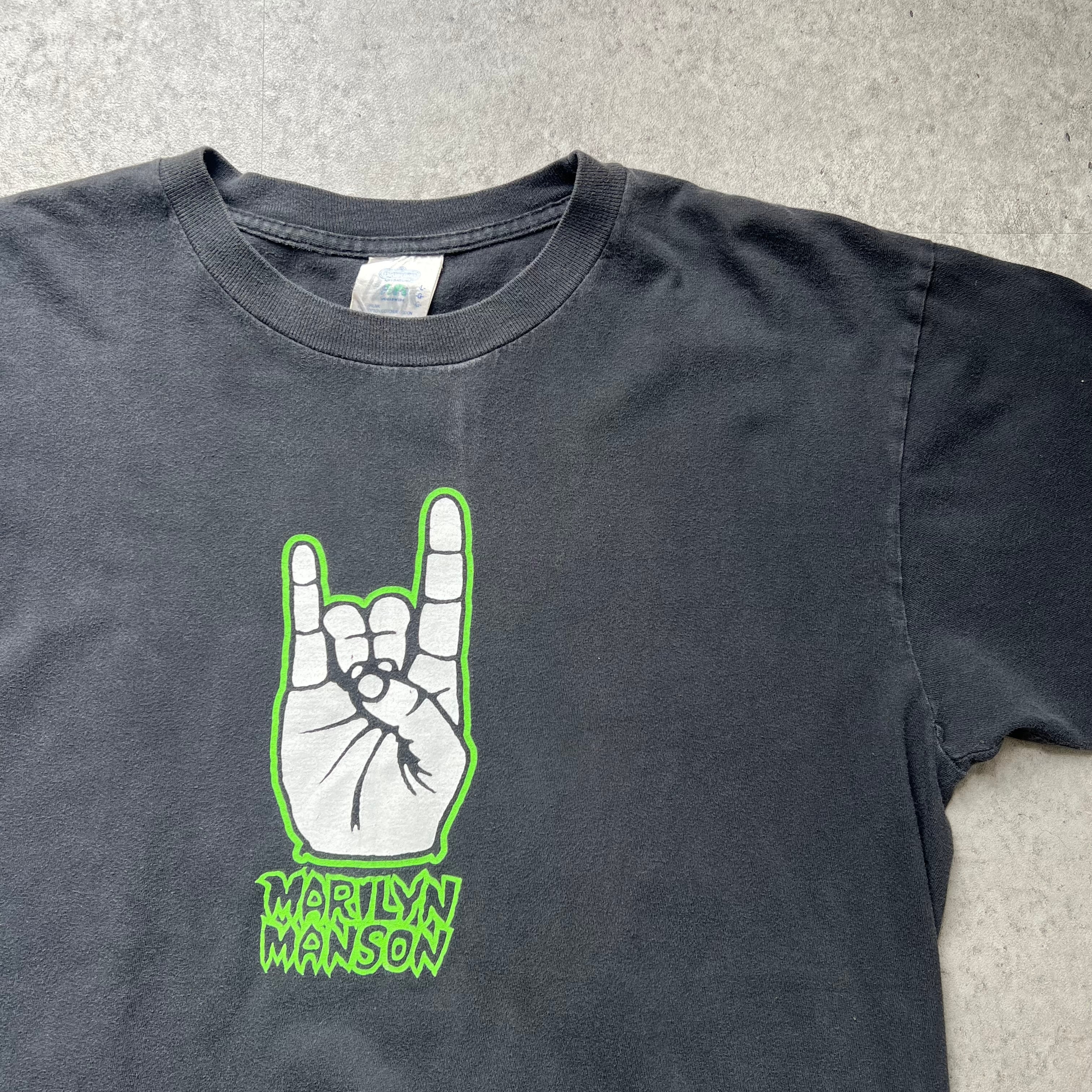 90s " Marlilyn Manson " WE LOVE HATE Print T-shirt made in USA WINTERLAND / 90年代 マリリン・マンソン ハンドサイン プリントTシャツ USA製 ウィンターランド