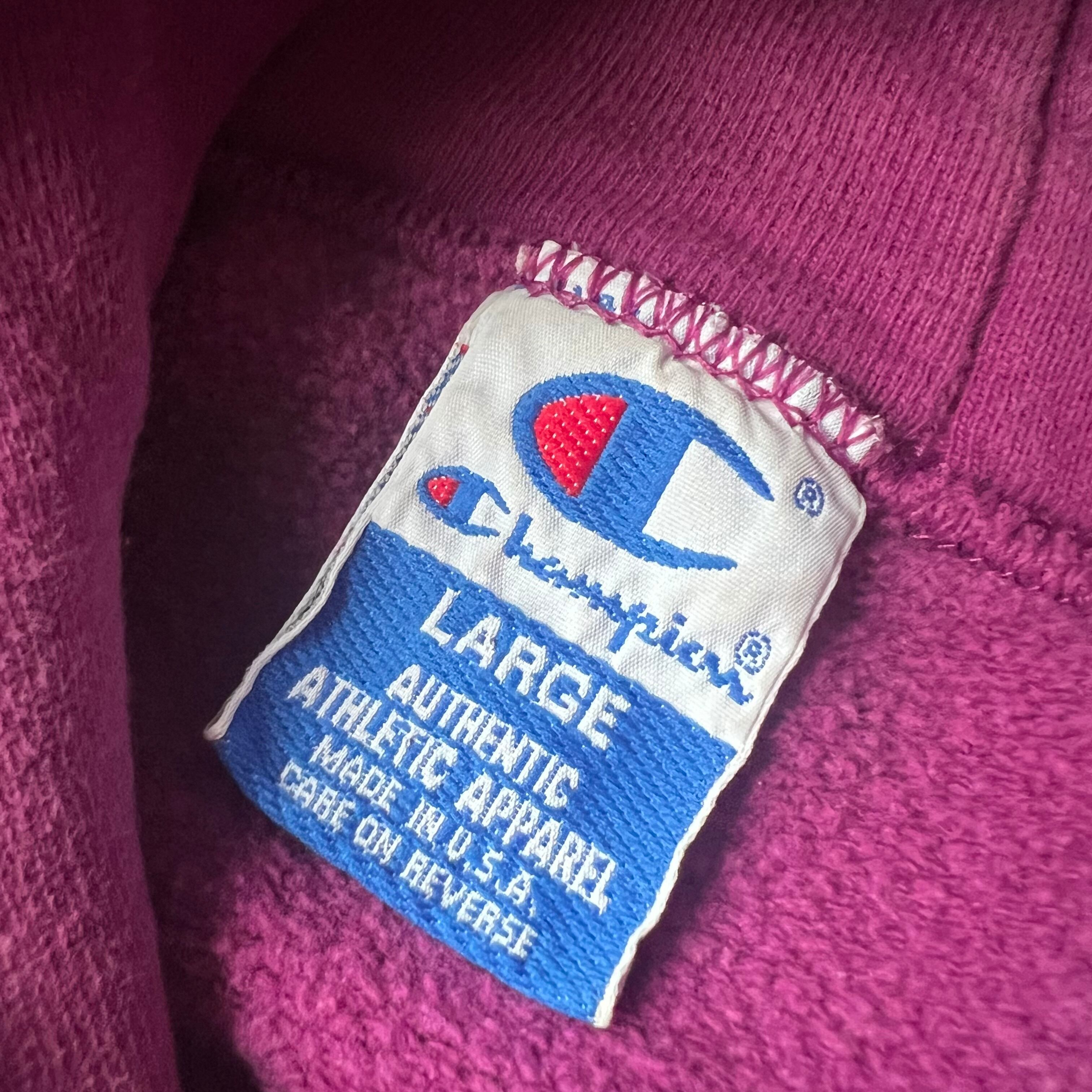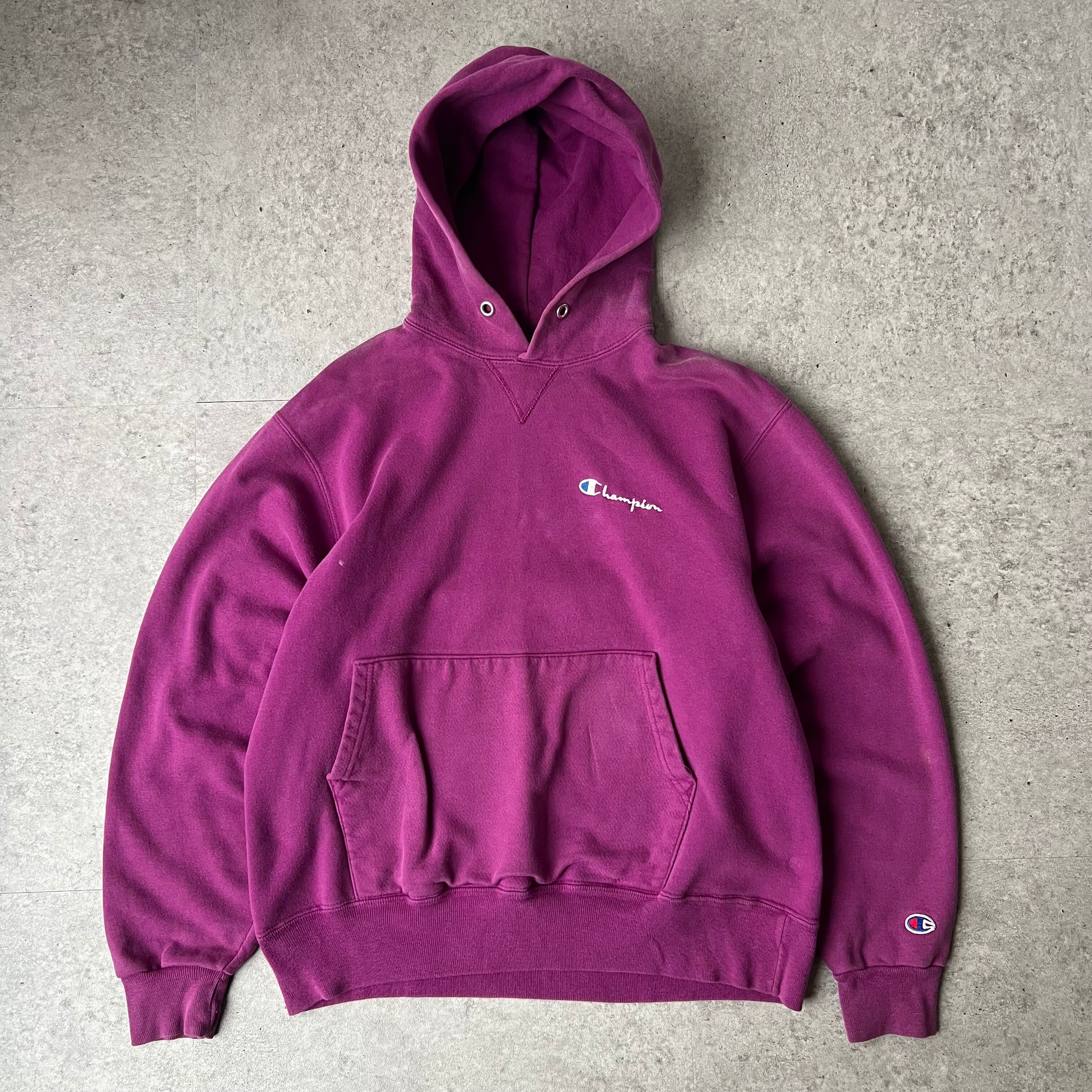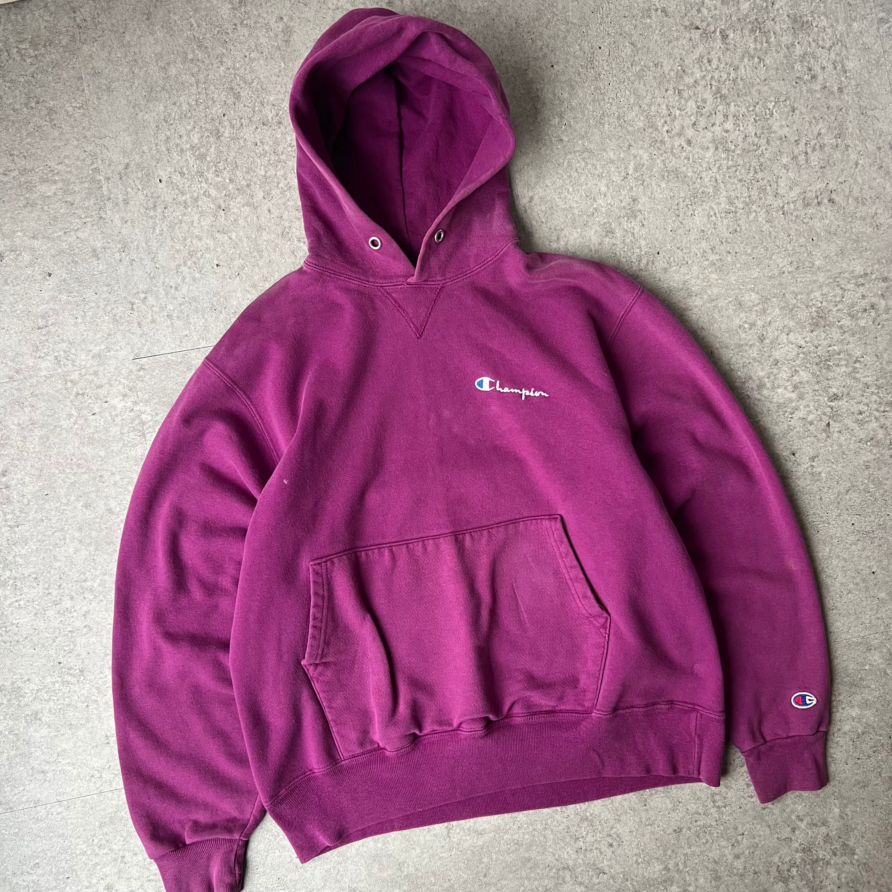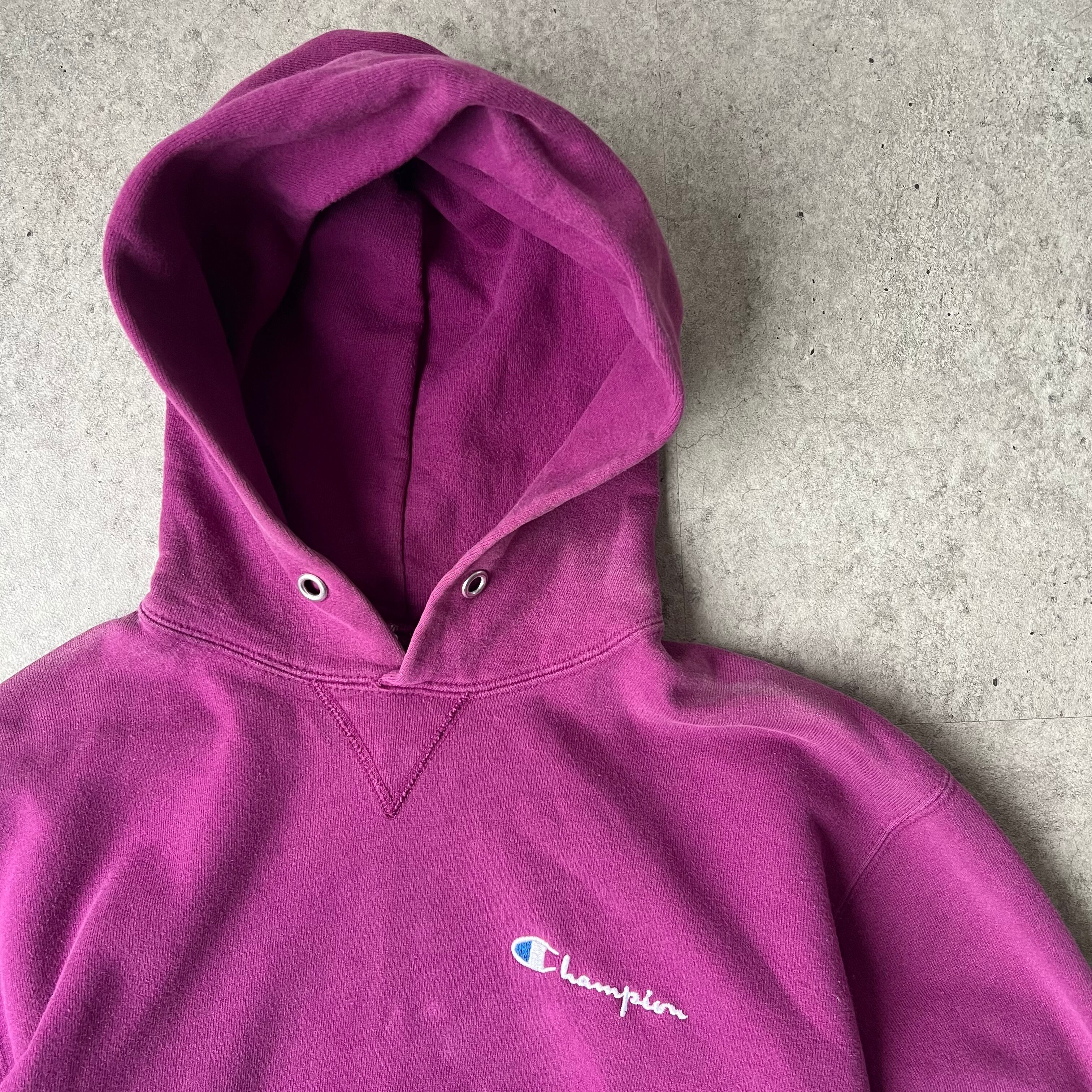 90s " Champion " Logo Hoodie made in USA Magenta / 90年代 チャンピオン ロゴ刺繍 フーディー USA製 マゼンタ