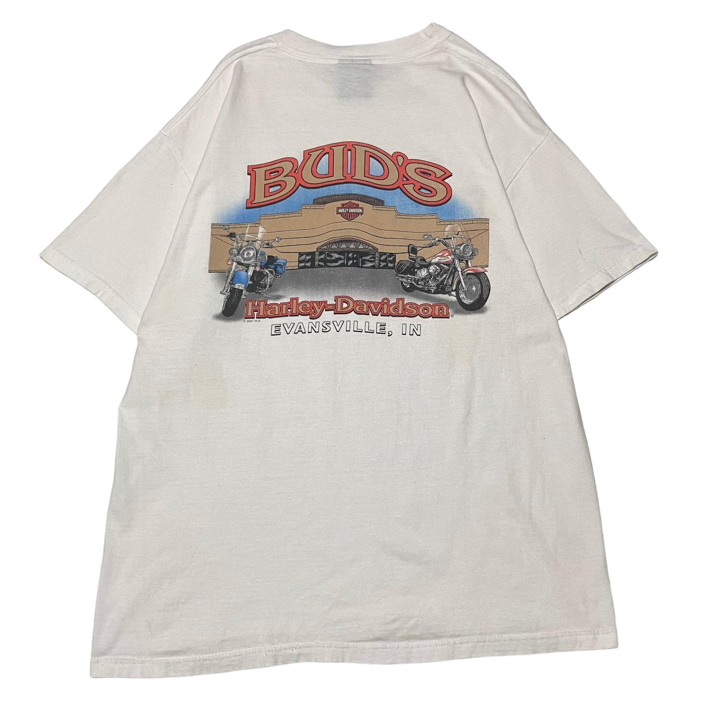 00s "HARLEY-DAVIDSON" BUD'S Print T-shirt made in USA White 2000年 ハーレーダビッドソン プリント Tシャツ アメリカ製 ホワイト