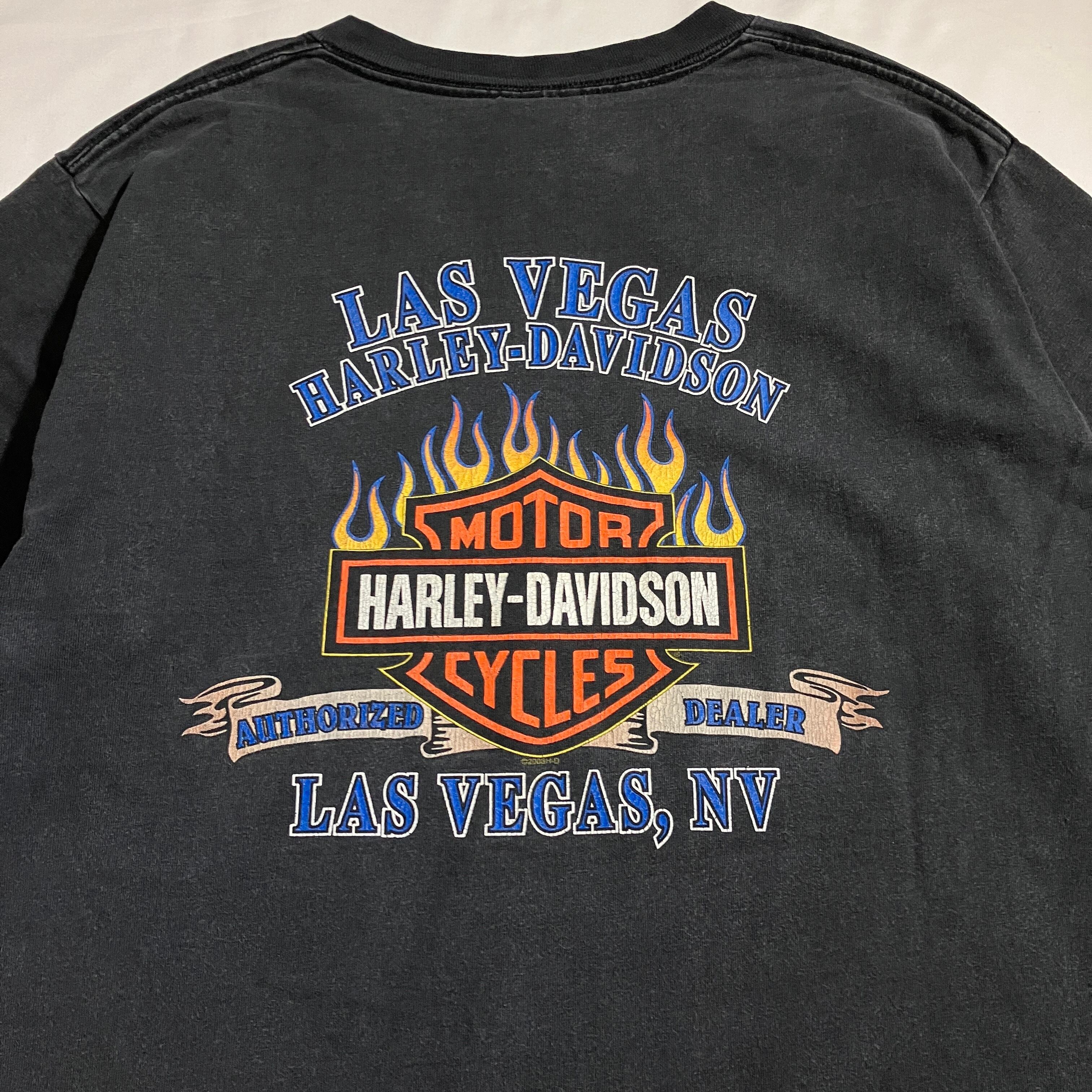00s " HARLEY-DAVIDSON " Flame Eagle Print T-shirt made in USA / 2000年代 ハーレーダビッドソン フレイムイーグル 両面プリントTシャツ アメリカ製 フェードブラック