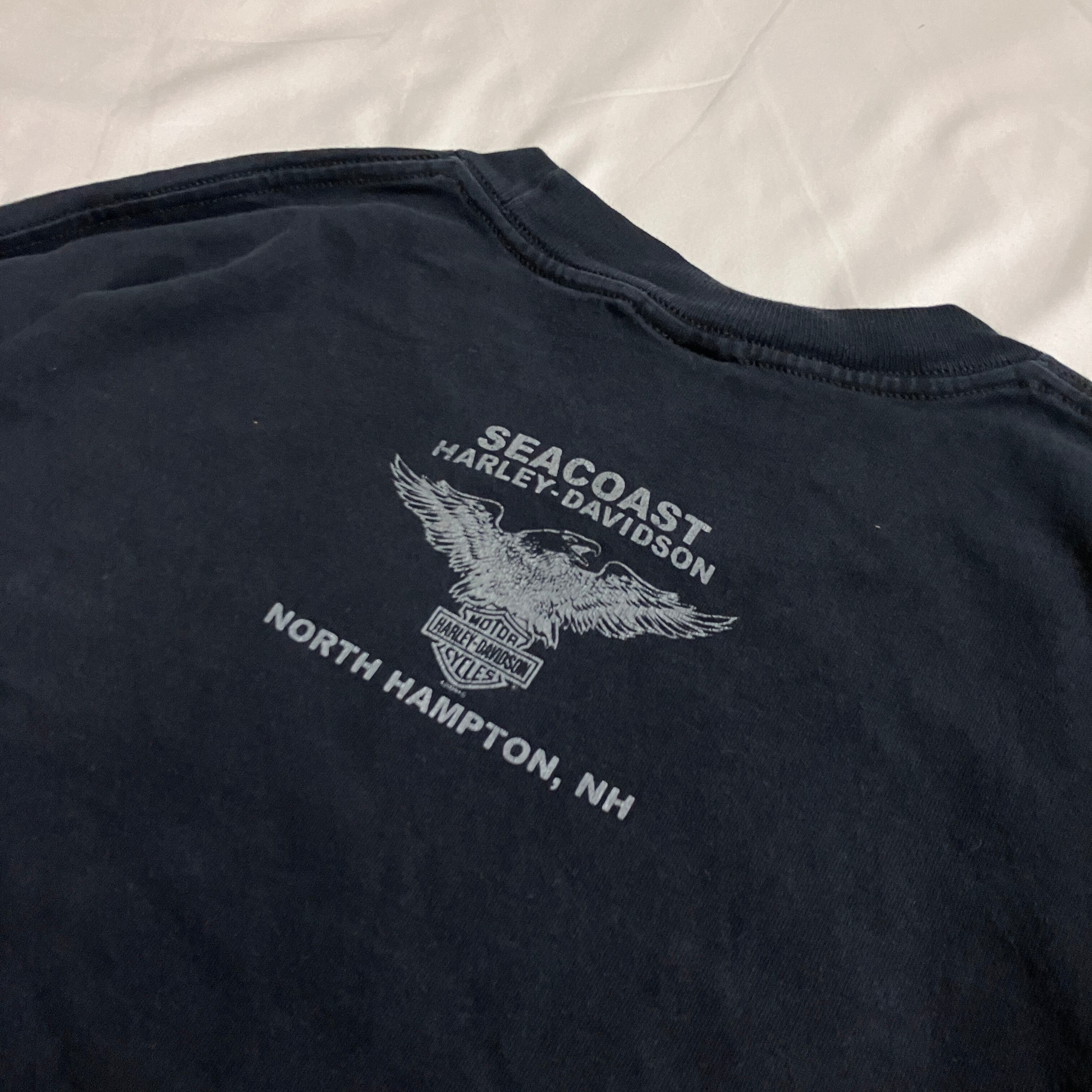 00s " HARLEY-DAVIDSON " Front Skall Flame Pattern Long Sleeve T-shirt / 2000年代 ハーレーダビッドソン スカル フレイムパターン 両面プリント ロングスリーブTシャツ