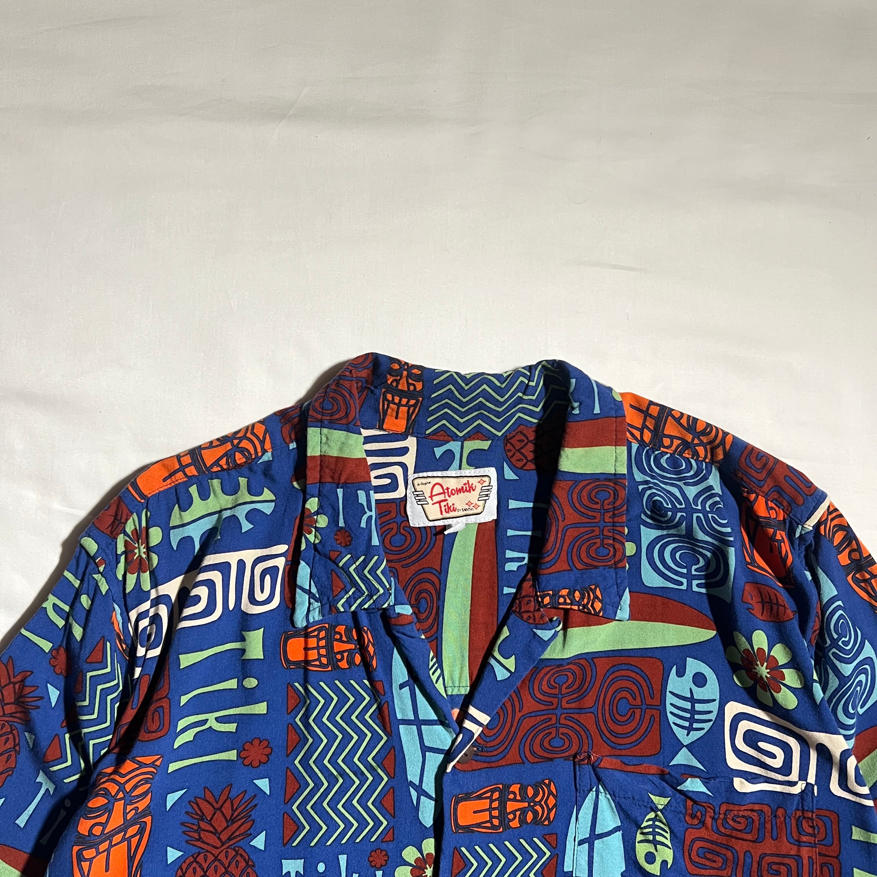 " Atomik Tiki " Aloha Shirt Rayon 100% / アロハシャツ レーヨン100% プリント 総柄